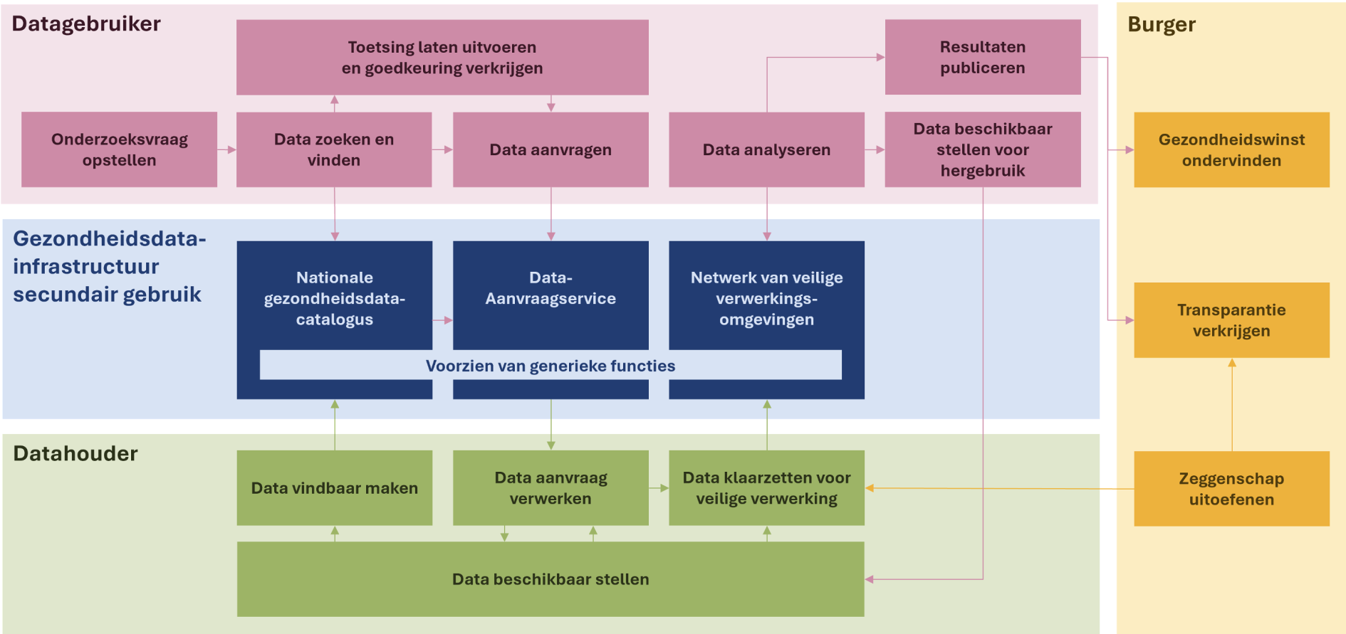 De andere usecases voor de datagebruiker worden binnen het ecosysteem van secundair gebruik ingevuld door andere partijen/systemen.