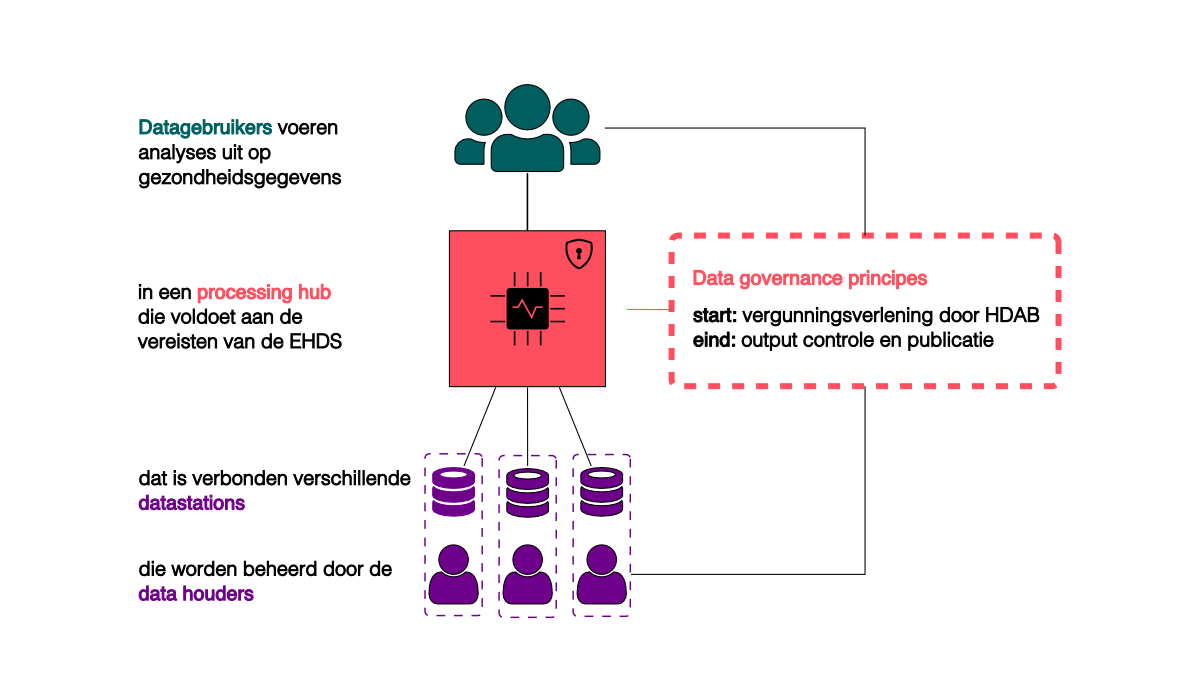Alhoewel Nederlandse en Europese richtlijnen uitgaan van een decentrale benadering met privacy by design, constateren we een lancune in het tot uitvoer brengen van dit principe. In de inleiding van de EHDS wordt in overweging 80 gesteld dat: